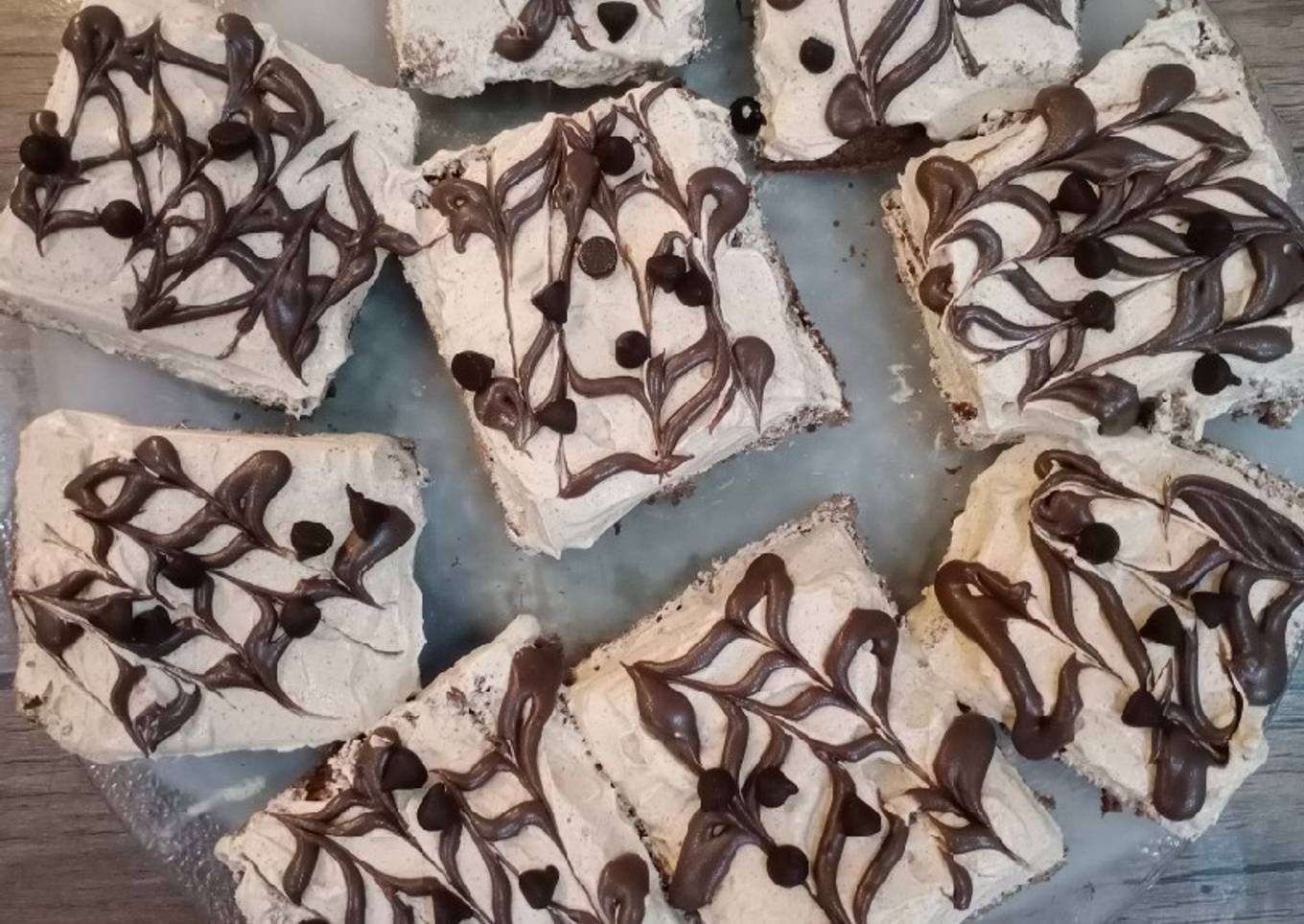 - Cut kar lain apni choice k according. Ganache s design banain or chocolate chip sprinkle karain.