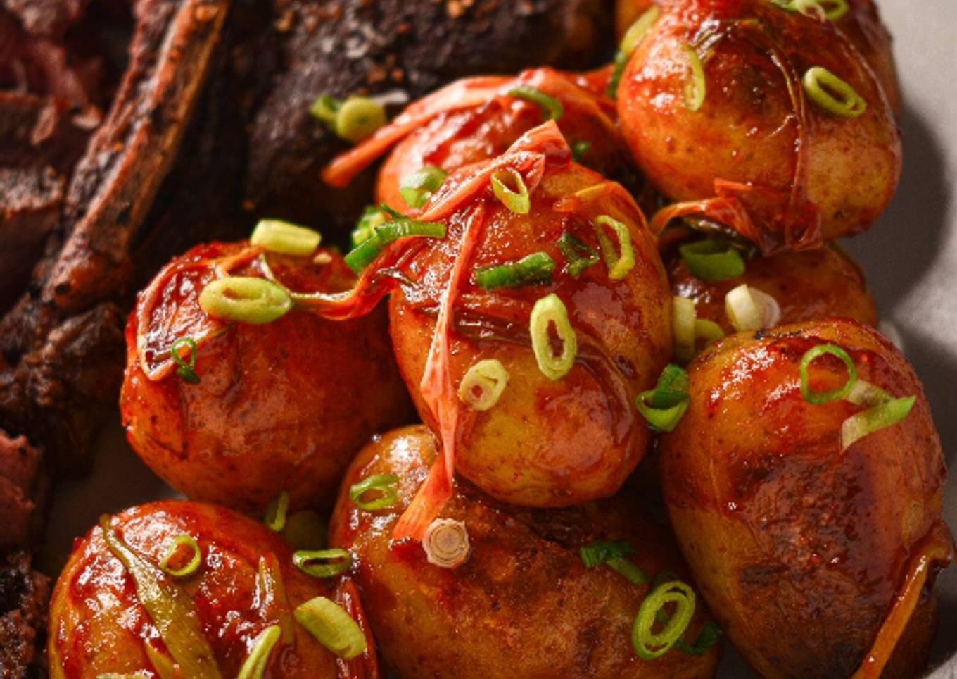 #potatoes #newpotatoes #gochujang #soysauce #honey #chilli #side #steak #springonion #greenonions #garlic #mainmeal #dinner