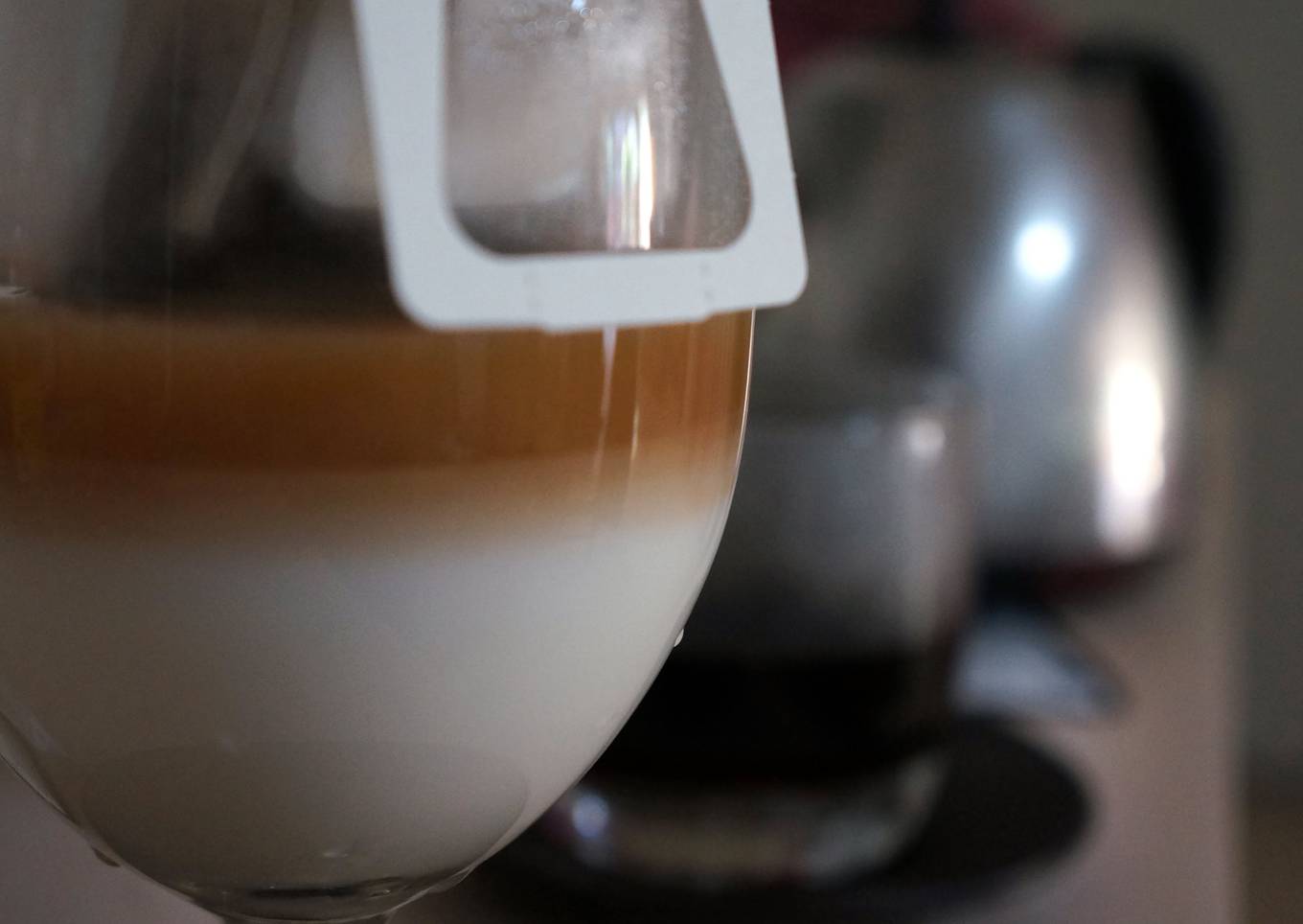 - slowly pour boiled coffee into the same glass, you can see 2 layers now