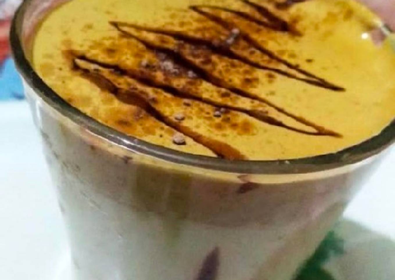 - Pour your glass milk of your liking, and put your dalgona coffee cream on top. Bon appetit! Dalgona is ready to serve..start serving by putting Hershey syrup around..